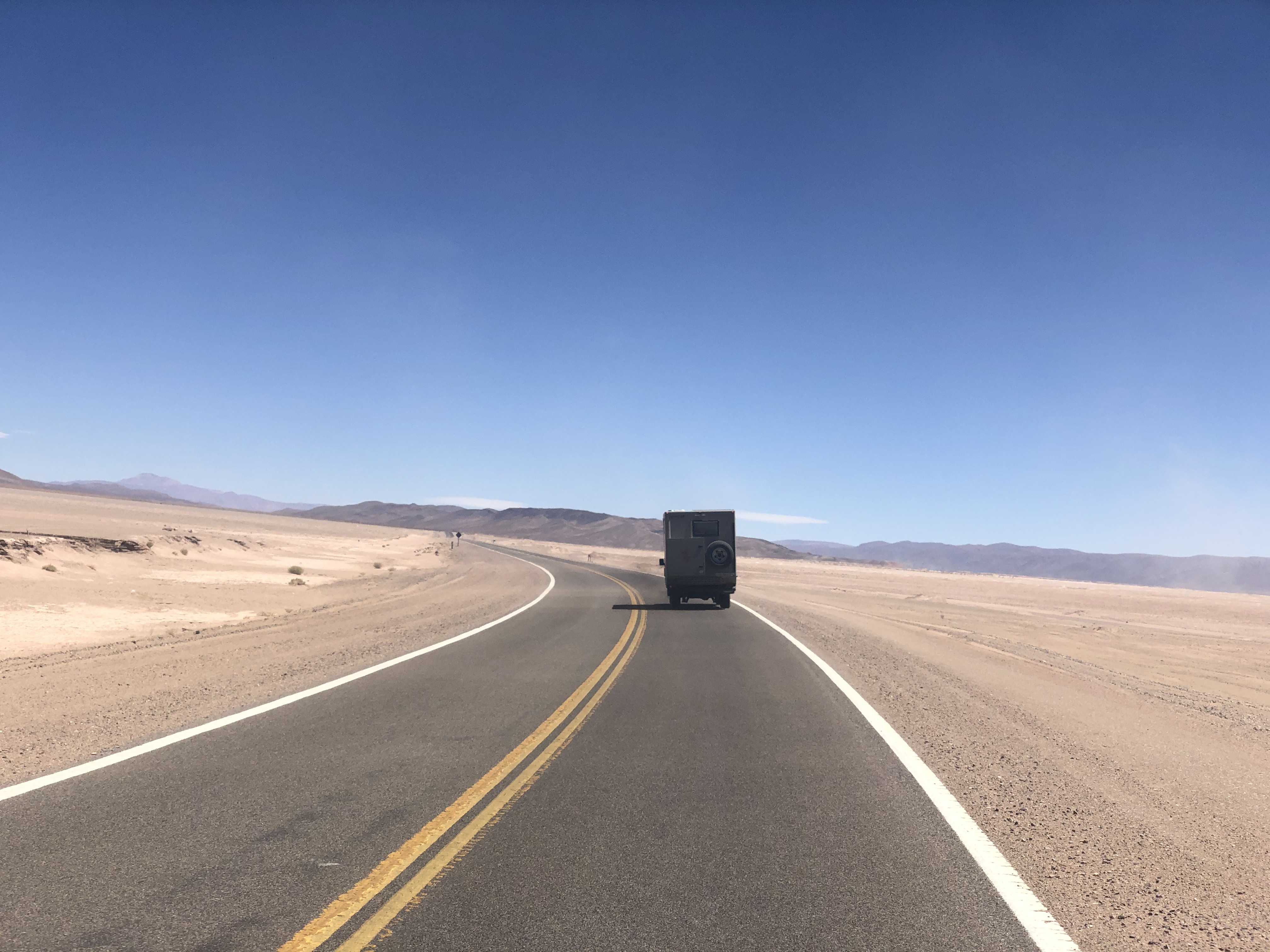 Diesmal starten wir mit 40kg zusätzlichem Gepäck. Ersatzteile für unseren Defender. Eine zusätzliche Haube für das Aufstelldache gegen den Regen und die Kälte aus LKW Plane. Neue Scheinwerfer für Nachtfahrten und einiges mehr. Leider aber keine neuen Bremsbeläge. Die haben uns Wochen später gefehlt. Wir dachten die bekommt man leicht. War aber nicht so. Wir haben sehr kalte Nächte erlebt, haben uns mit etlichen Nächten oberhalb 3500 m abgemüht. Haben Flüsse und Salzseen durchquert. Haben Strassensperren Unruhen erlebt und deswegen immer wieder unsere Pläne der politischen Situation angepasst. Wahlen in Südamerika fanden fast zeitgleich in Uruguay, Argentinien, Chile und Bolivien statt.